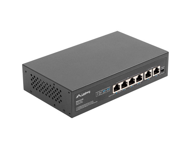 Switch Lanberg RSFE-4P-2FE-60 został wyposażony łącznie w 6 portów, w tym 4 porty PoE+ oraz 2 Uplink. Przemyślana konstrukcja i dbałość o jakość komponentów zapewnia użytkownikowi aż do 60 W całkowitej realnej mocy dla urządzeń końcowych, co oznacza możliwość podłączenia równocześnie: