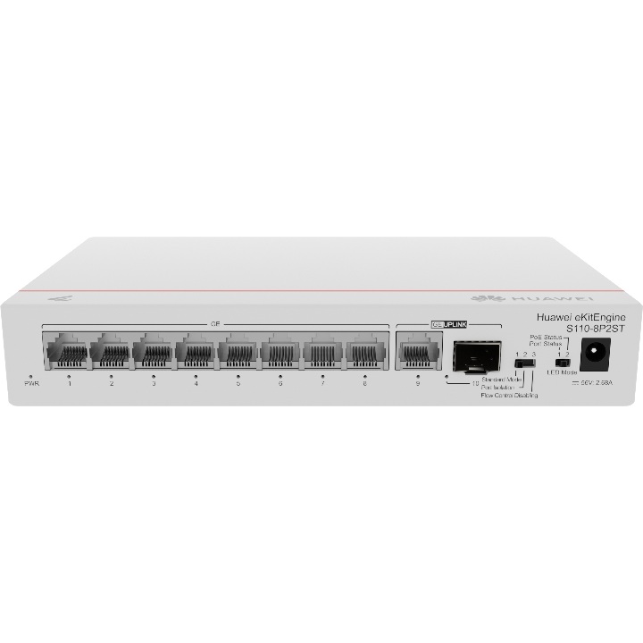 Huawei S110-8P2ST to kompaktowy, niezarządzalny przełącznik sieciowy, idealny do małych i średnich instalacji sieciowych. Dzięki obsłudze PoE+ umożliwia jednoczesne przesyłanie danych oraz zasilanie urządzeń sieciowych. Urządzenie wyposażone jest w 8 portów 10/100/1000BASE-T z PoE+, dodatkowy port uplink Gigabit Ethernet oraz port GE SFP, który pozwala na elastyczne podłączenie sieci światłowodowej. Wysoka przepustowość przełączania 20 Gbit/s oraz wydajność przekazywania pakietów 14,88 Mpps zapewniają stabilną i płynną pracę nawet przy intensywnym ruchu sieciowym. Switch działa w trybie plug & play, co oznacza szybki montaż i brak konieczności konfiguracji. To niezawodne rozwiązanie do biur, systemów monitoringu CCTV, sklepów, hoteli oraz innych środowisk wymagających prostego i wydajnego zasilania PoE. Specyfikacja: